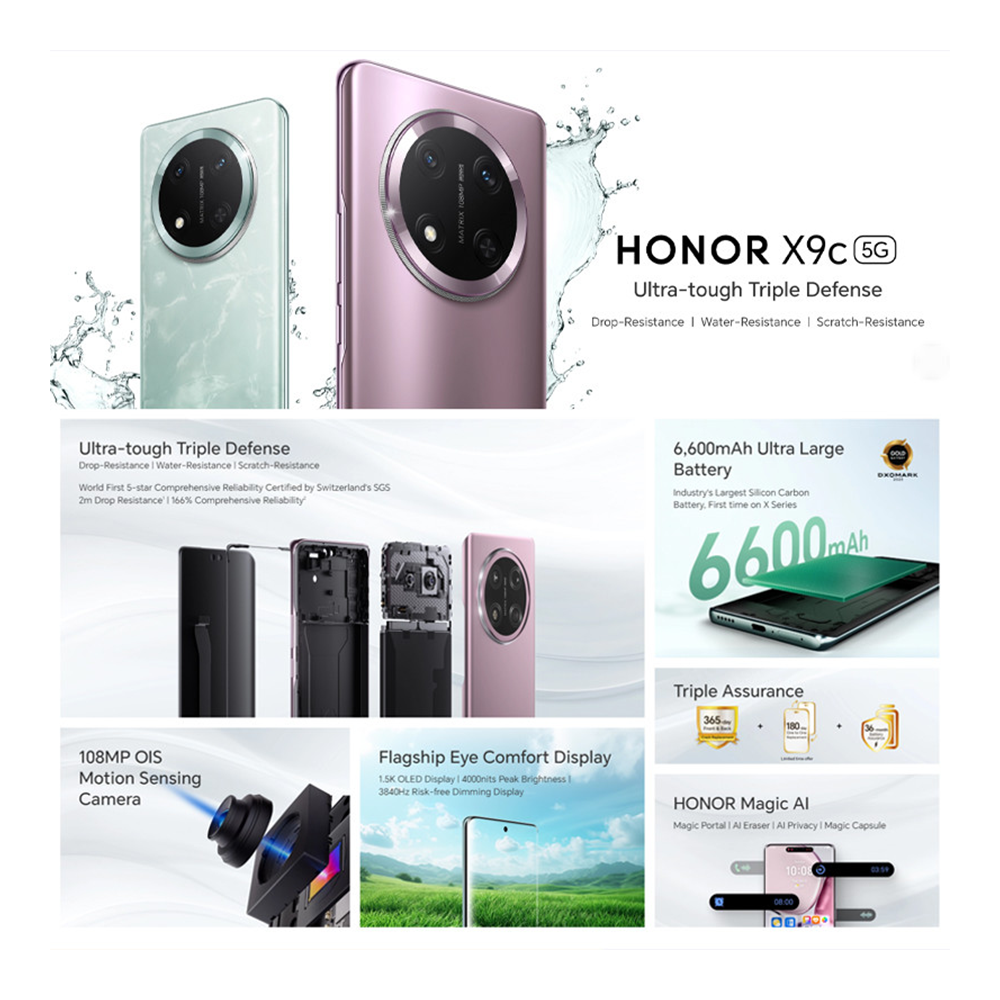هاتف اكس 9 سي من هونر، شاشة 6.78 بوصة، رام 12 جيجابايت، 256 جيجابايت – أسود