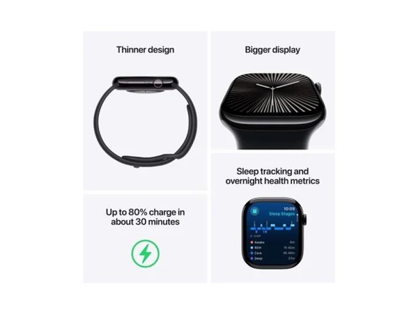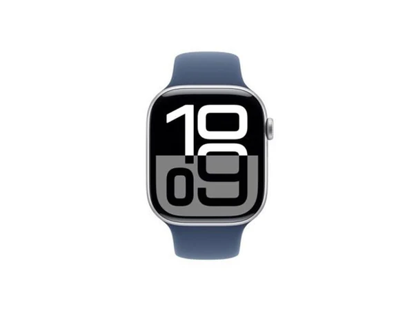 ساعة ابل الجيل العاشر جي بي اس - 46 ملم - هيكل من الالمنيوم الفضي وسوار رياضي من الدنيم - مقاس سمول/ميديم