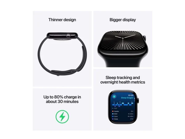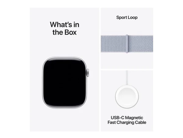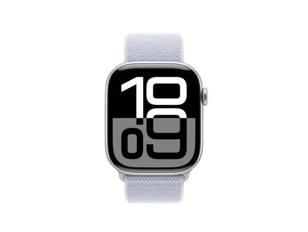 ابل ساعة الجيل العاشر جي بي اس - 46 ملم - هيكل من الألومنيوم الفضي مع حزام رياضي باللون الأزرق سماوي
