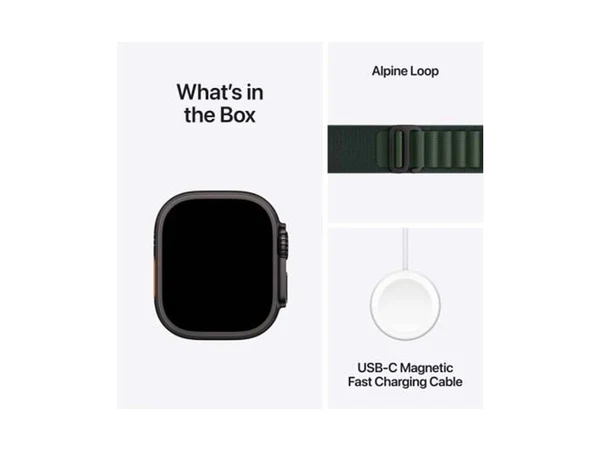 ابل ساعه الترا 2 جي بس اس + خلوي هيكل من التيتانيوم الأسود مقاس 49 ملم مع حزام جبال الألب باللون الأخضر الداكن - كبير