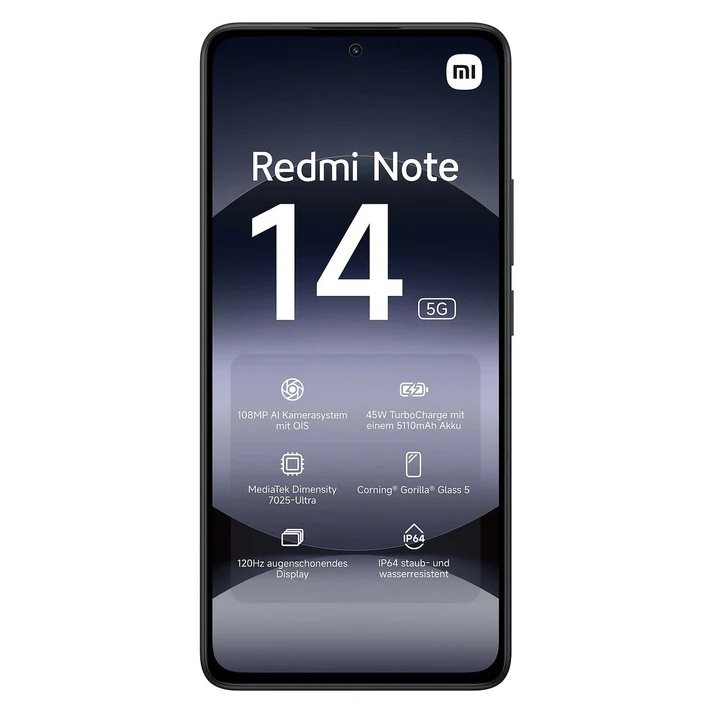 شاومي ريدمي نوت 14 - 5 جي - موبايل - 8 جيجا بايت رام 256 جيجا بايت روم - أسود ميد نايت + سماعات ريدمي بادز 6 بلاي باللون الأبيض
